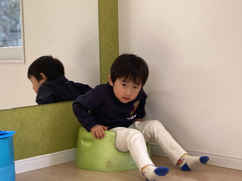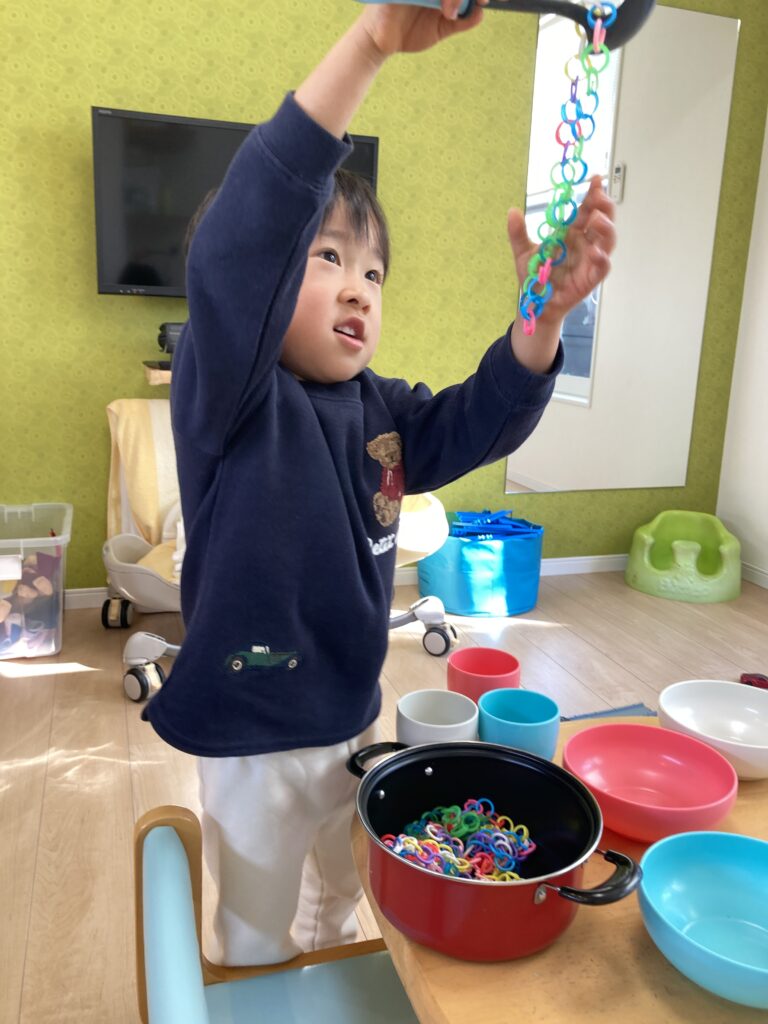 おままごとでは「こっち!」と お皿へよそったり…「こぼしちゃったぁー」とおどけてお話ししてくれたり…楽しそうでした