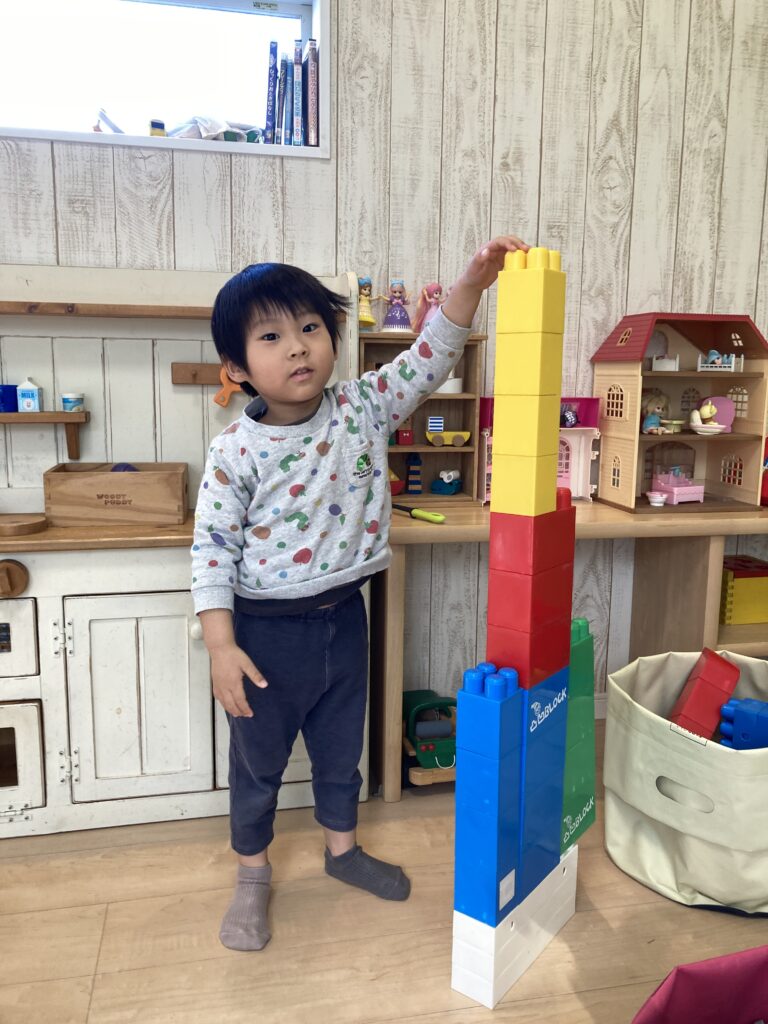 大きなブロックを自分と同じくらいの高さに作り上げて、ちょっと得意げな表情していたのが、可愛かったです♡