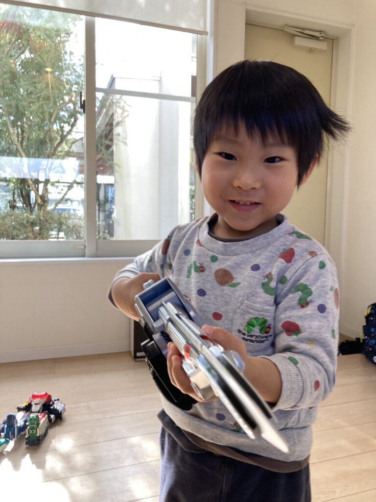 パパとウルトラマンを観ることがあるそうで、戦隊のおもちゃにテンションが上がり、たくさんお話しして一緒に遊んでくれました♪