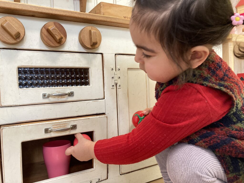 寝ていたそうですが、元気に入室して、すぐにおままごとで遊び始めました
