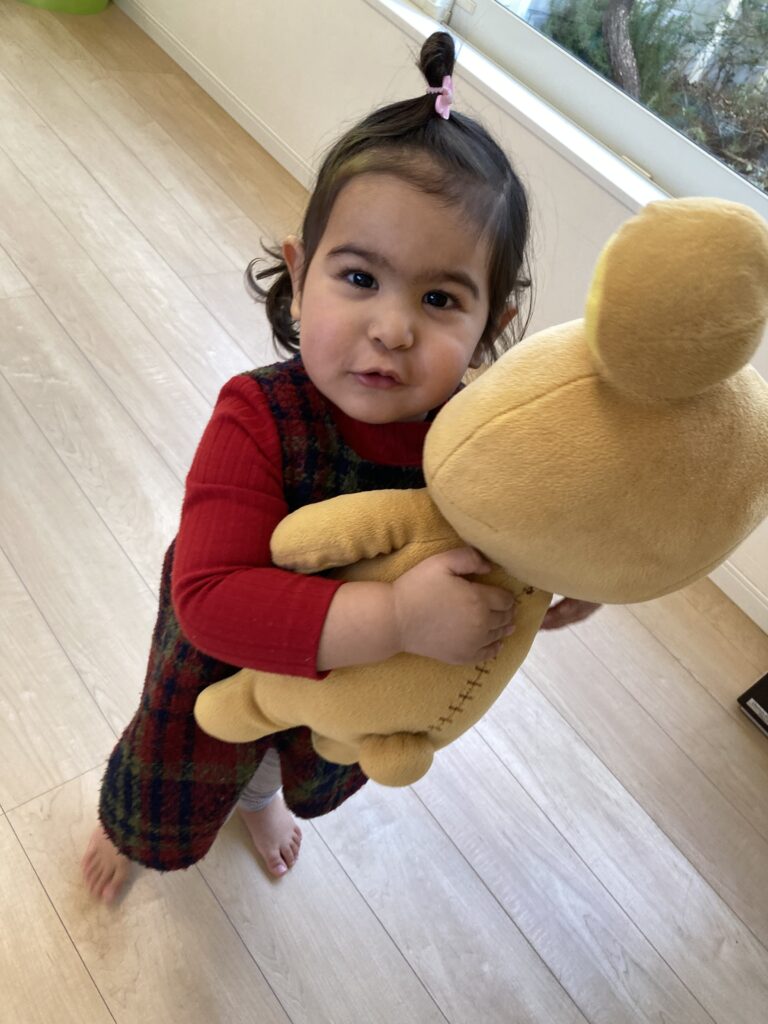 「アンパンマン!いない?」と、何度もアンパンマン人形をあちらこちらに置いてきて、お人形さんのかくれんぼを一緒に楽しみました