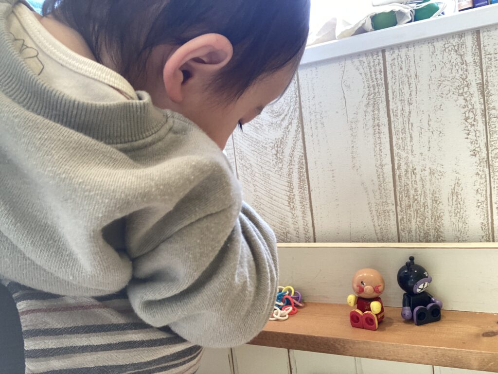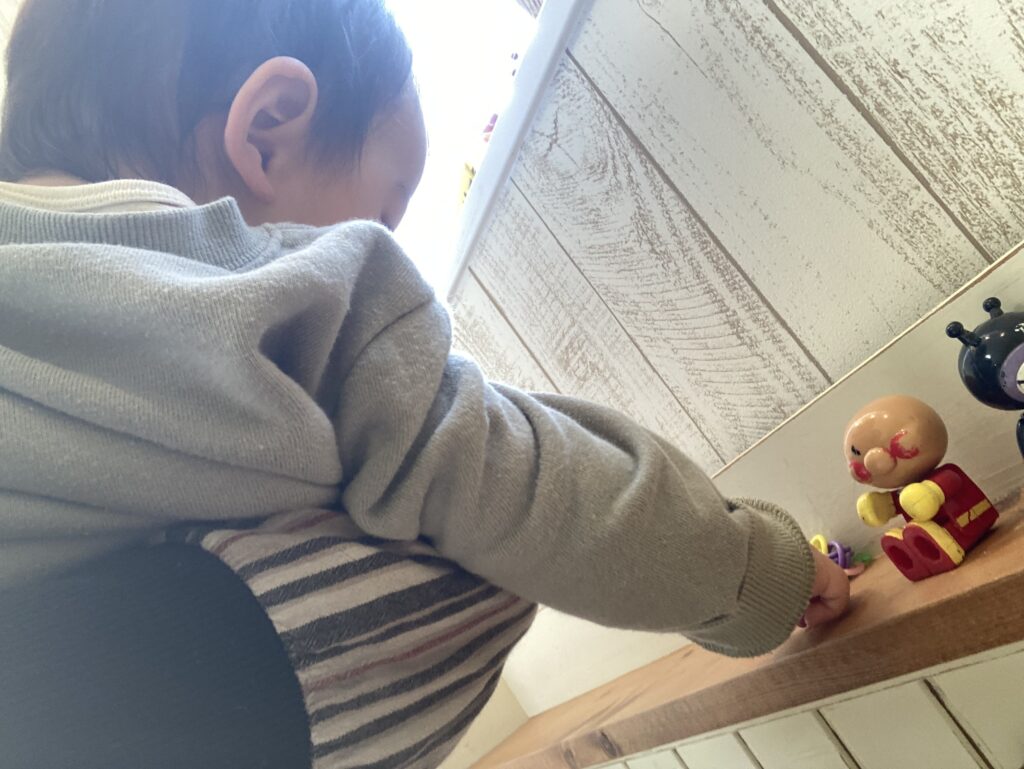 泣いて入室しました。抱っこするとギュッと不安そうにしがみついて泣いていましたが、落ち着いてきても離れまいとぴたっとくっついていました