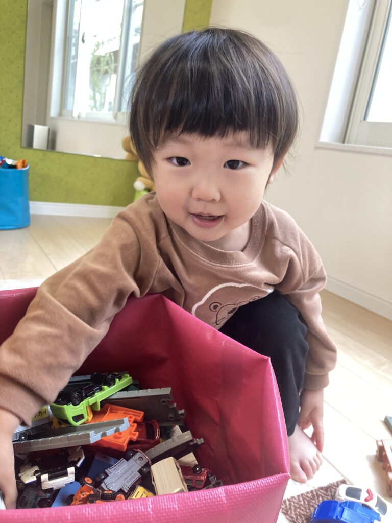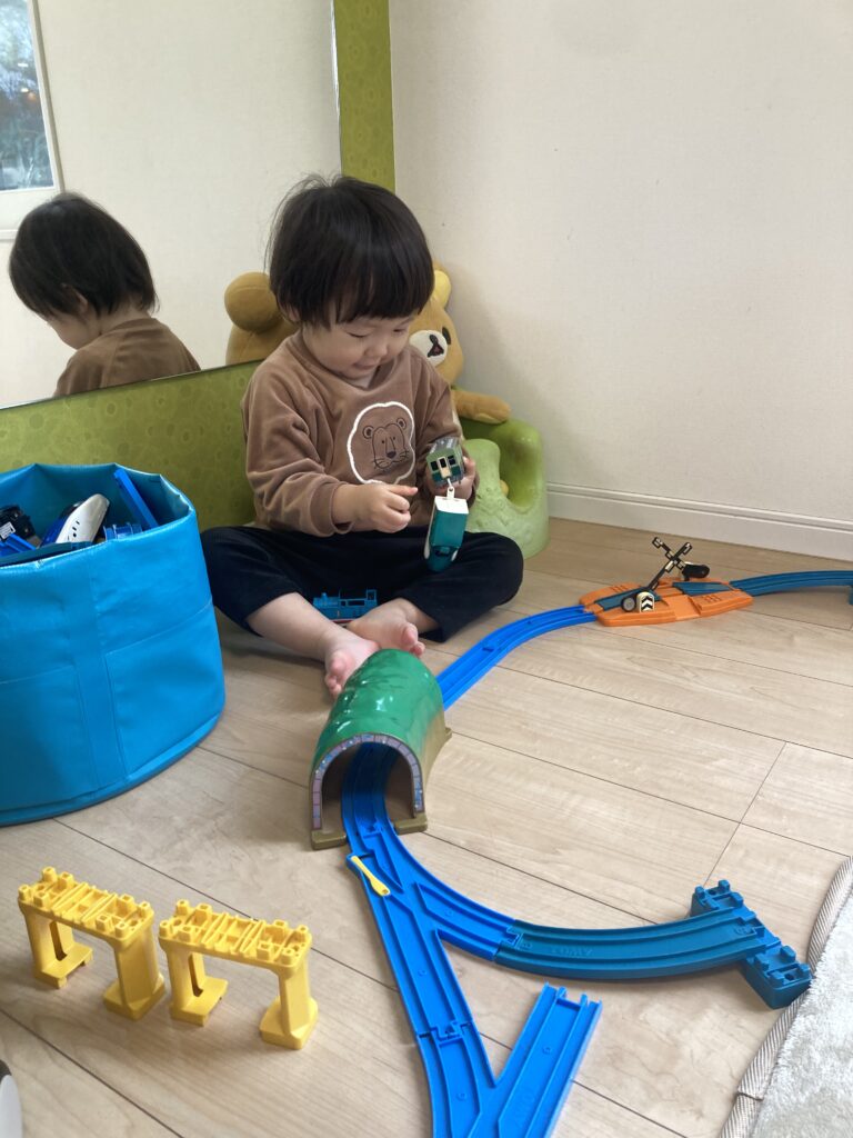 すぐに大好きなトミカで遊び始めました♪車種を教えてくれたり、スポーツカーがカッコいいとお話ししてくれました