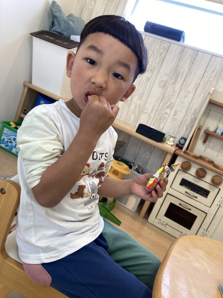 おやつをいただきながら、アンパンマンの好きなキャラクターのことや、保育園のことなどをたくさんお話ししてくれていました
