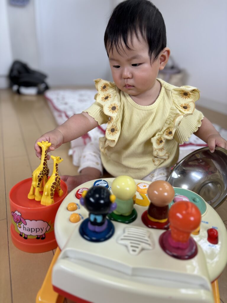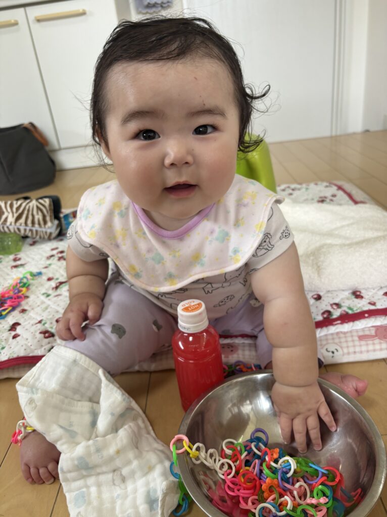 音が鳴るおもちゃに合わせて身体をゆすったり、チェーンリングをかしゃかしゃして楽しんでおりました