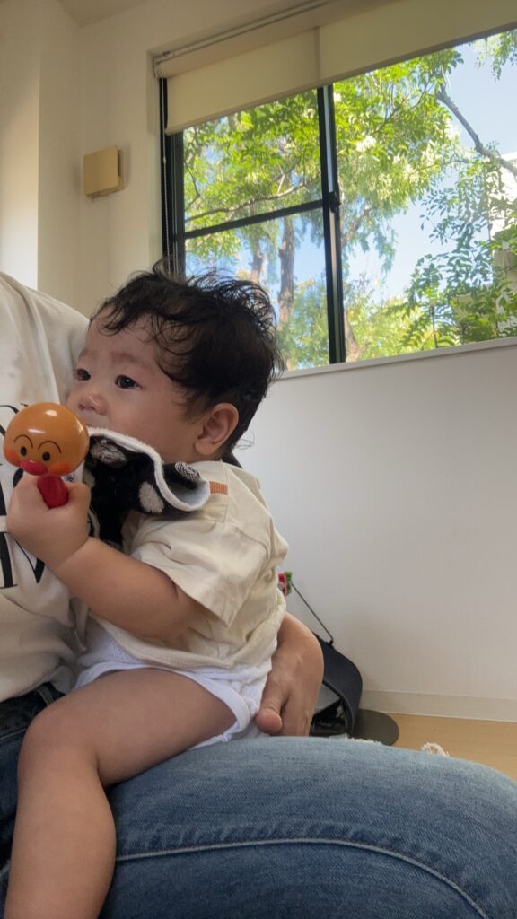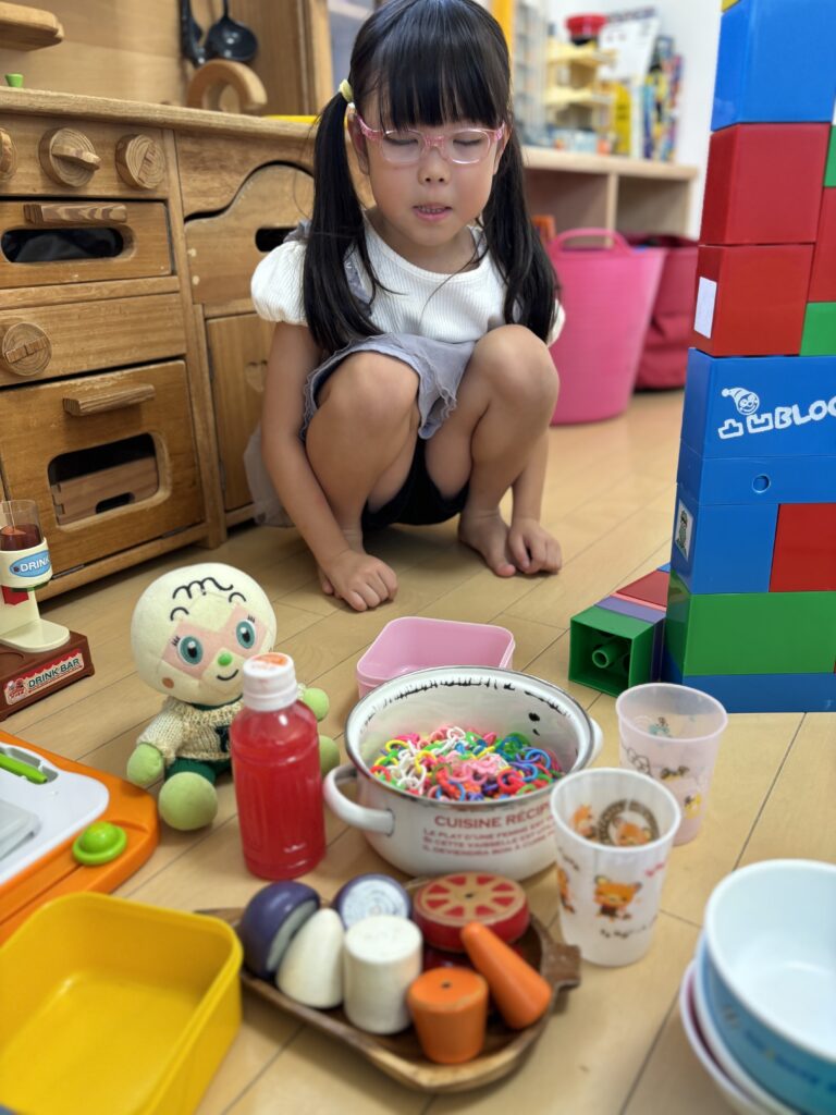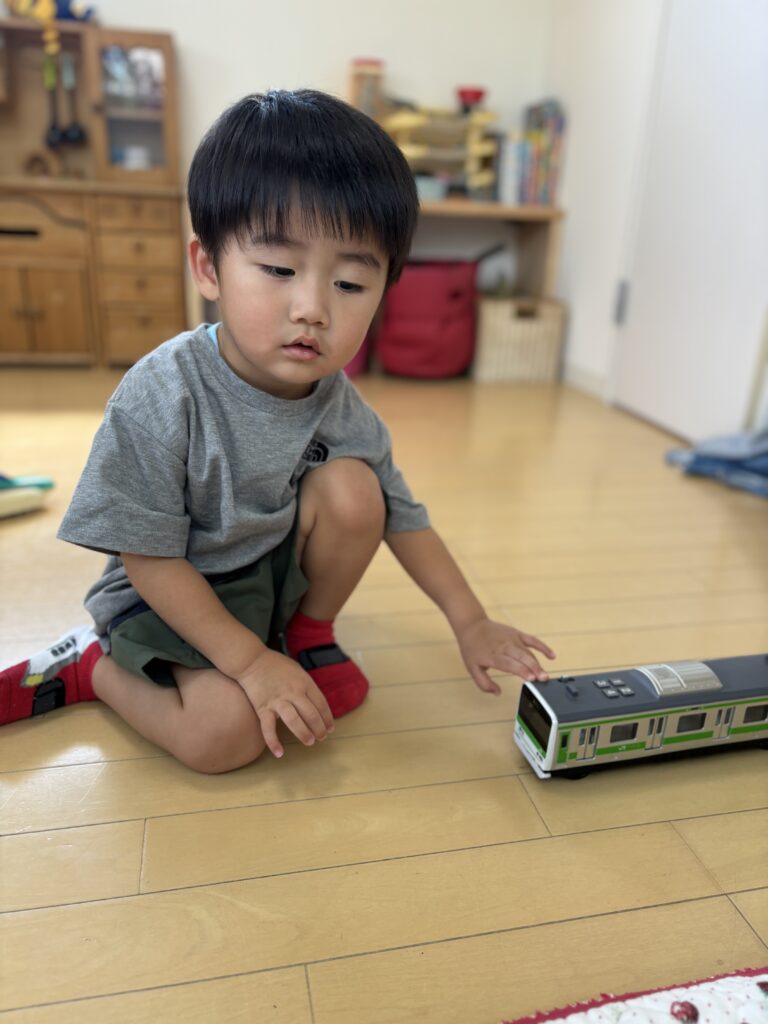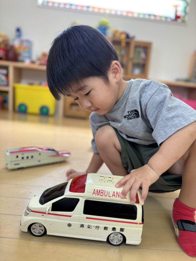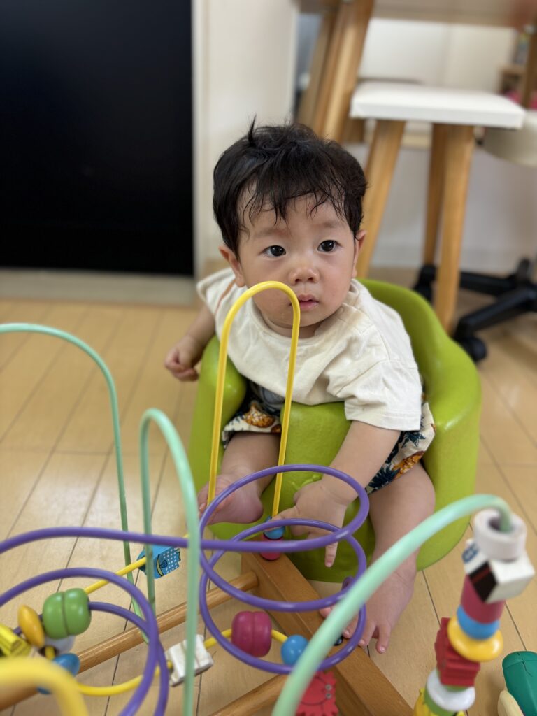 入室時泣けてしまいましたが、泣き止みおもちゃで遊び始めました。