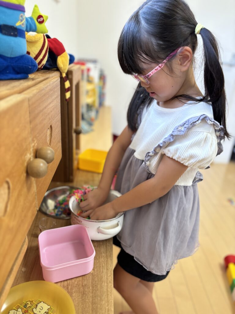 いつもおままごとでたくさんのご馳走を作ってくれたり、使ったものをちゃんとお片付けしてくれるお姉ちゃんです