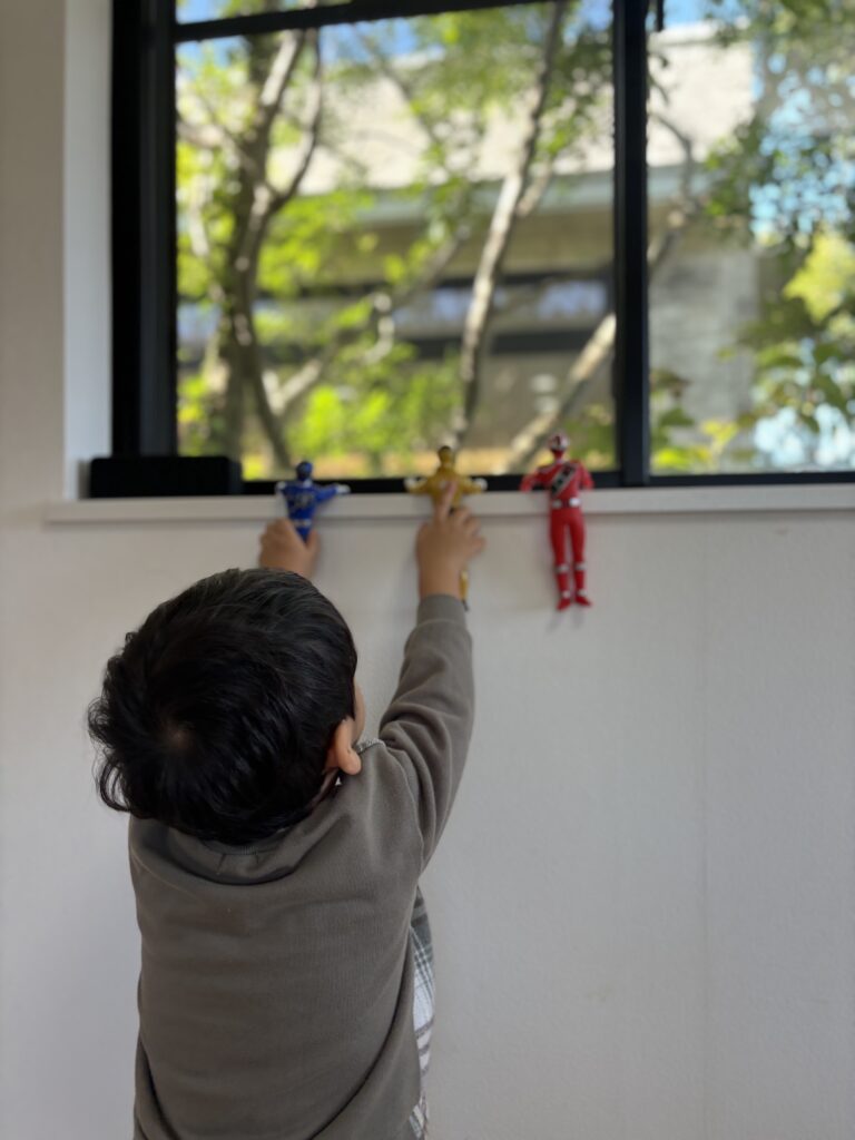 お気に入りのおもちゃを窓に並べていつでも見えるようにしていました。