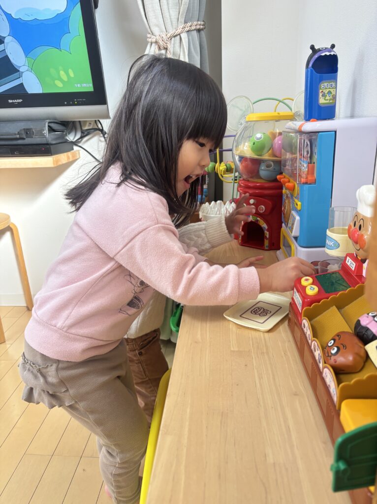 すぐにアンパンマンのパン屋さんとジュースやさんでお店屋さんごっこ