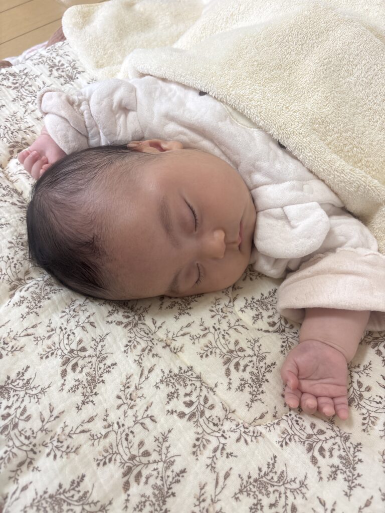 投稿日: 2025年12月25日2025年12月26日 投稿者: oazo託児の様子 大柳店 R7.12.25 「浜松市旧南区にある無料託児付き美容室oazoの保育士たけしたです」 初めましての3ヶ月のお子様が託児をご利用下さいました。 首がすわっているお子様は託児のご利用可能です。 入店時からお昼寝していましたが、オムツが汚れてしまったとのことでおむつ交換。 その際、少し泣けてしまいましたが、すぐに指を吸いそのまままたお昼寝へ。 バンザイして寝る姿がなんとも可愛くて、、ずっと癒されておりました🩵🩷 小さな小さなお手手が可愛い〜。 よく寝ていていました。