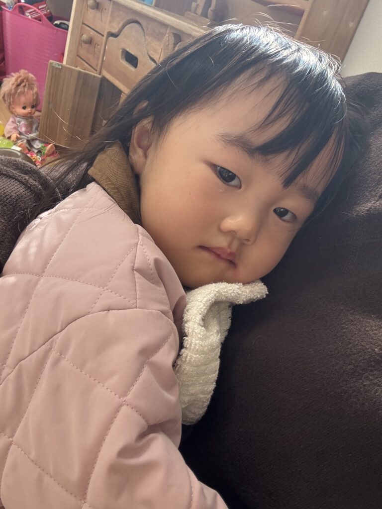 完全に大丈夫というタイミングで、上着を脱ぐことを伝えて、そこからは元気に遊び始めました。