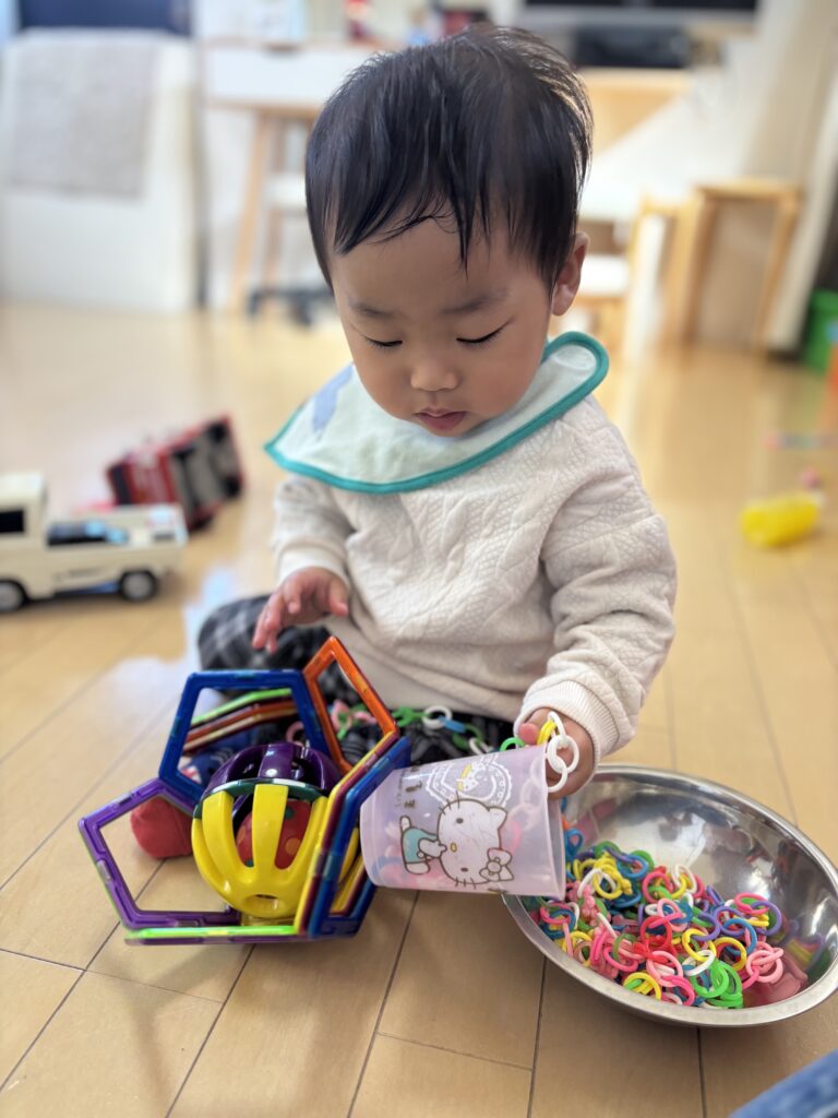 お皿に入れたり出したりして感触を味わっていましたよ