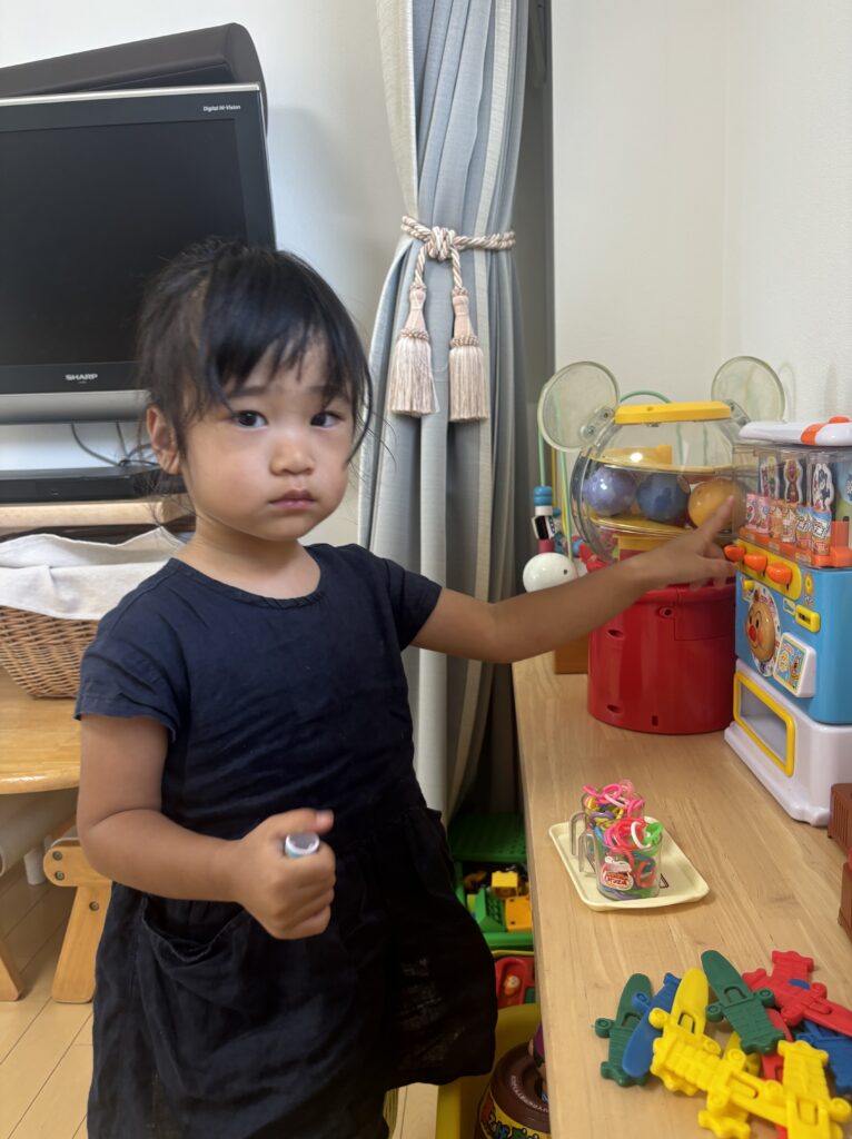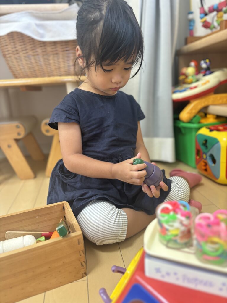 今、トイトレ中なので様子を見て、トイレのある場所を伝えて、サインを見逃さないように気をつけて一緒に遊びました😊