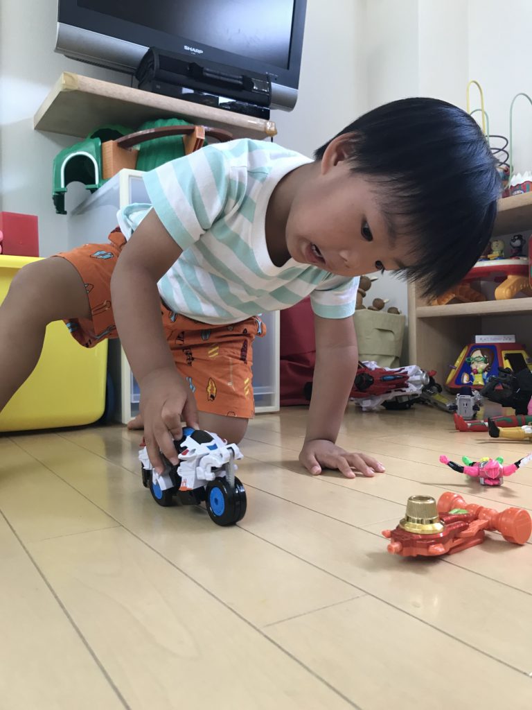 入室後から戦隊、アンパンマン、トミカなど鼻歌まじりで楽しく遊んでおりました。
