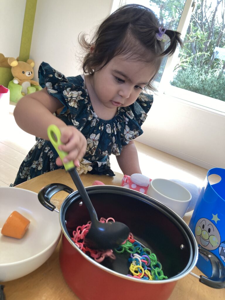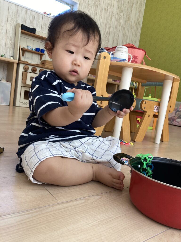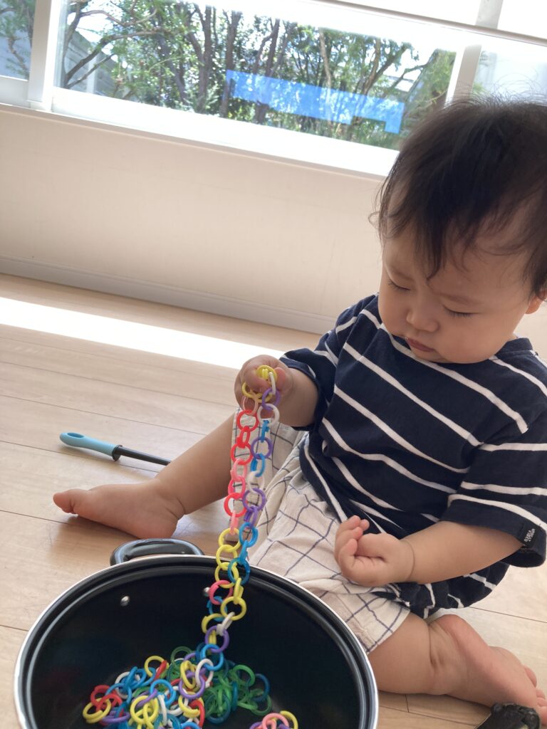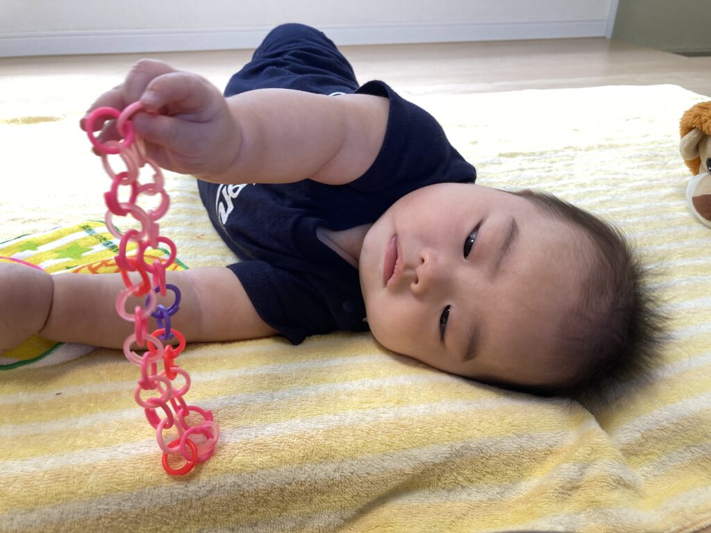 ご持参いただいたタオルをふりふりしたり、ジッと見て遊んでいました♪