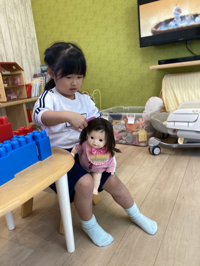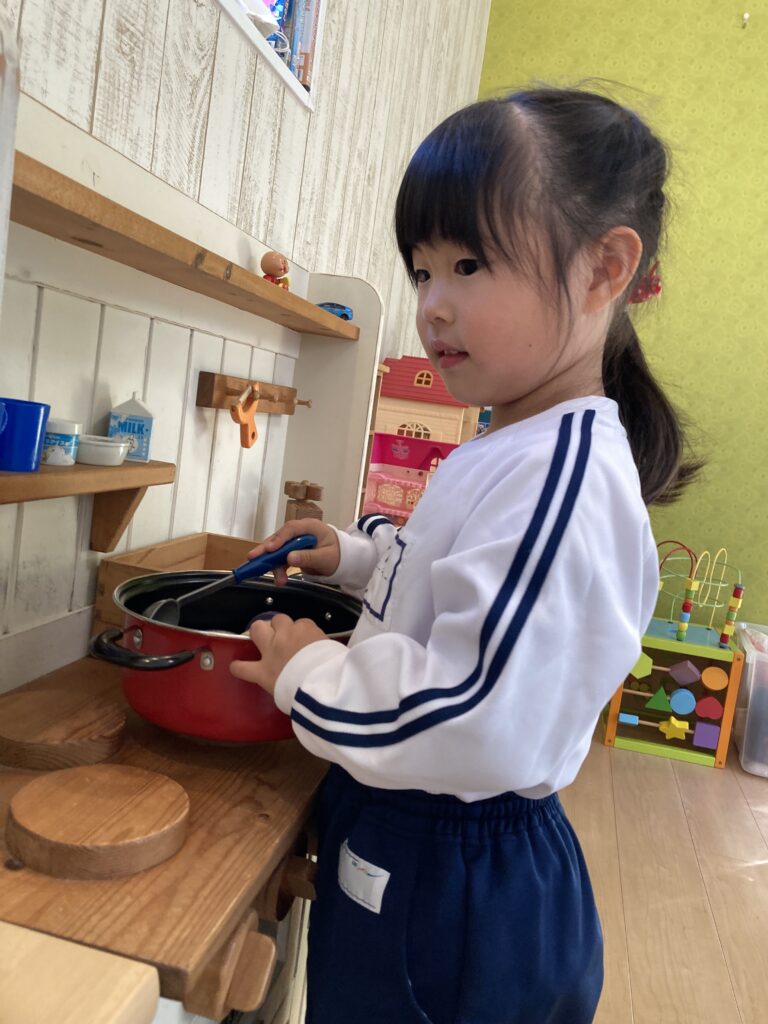 すっかり落ち着いてからは、キッチンやドールハウスやお人形さんで遊んでいました♪