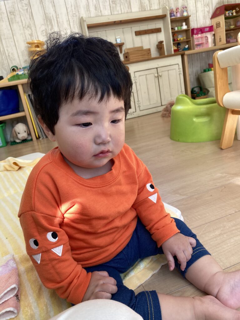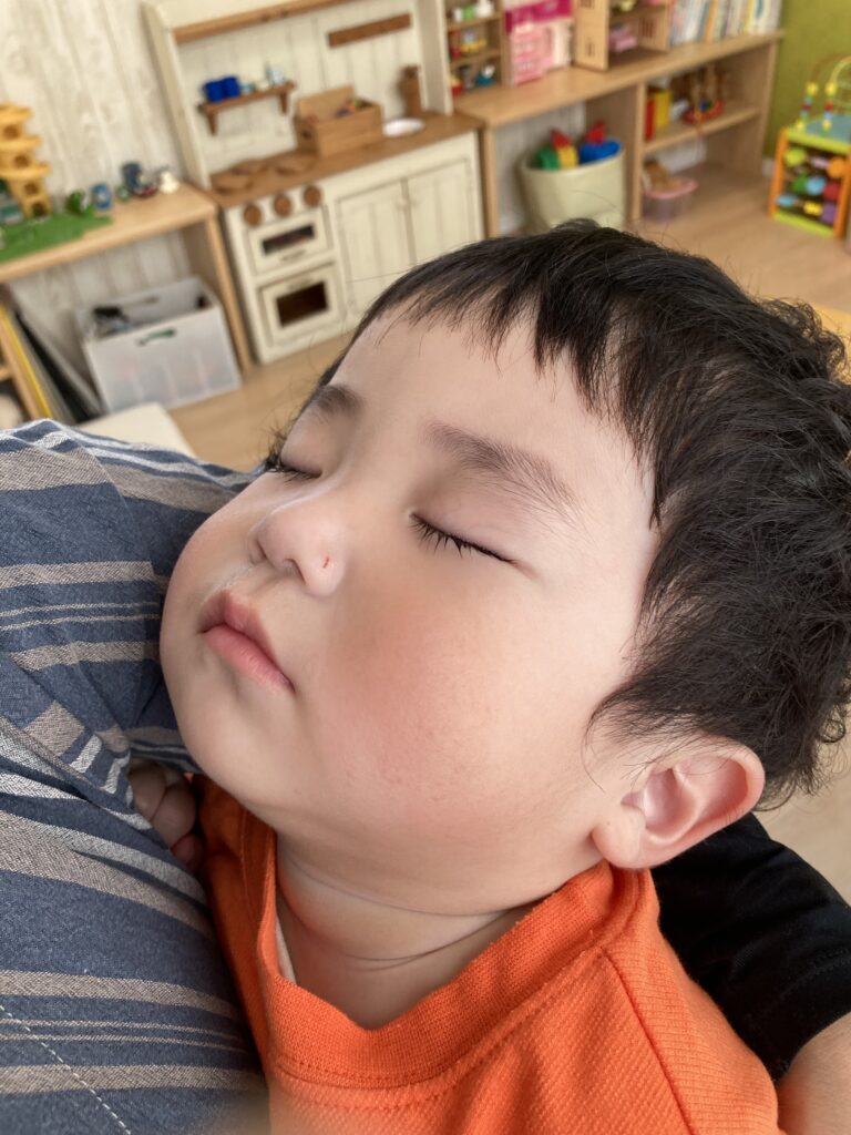 抱っこしていたら、お昼寝タイムになりました…一度起きそうになりましたが、またうとうと…その後はお母様のお迎えまで、よく眠っていました