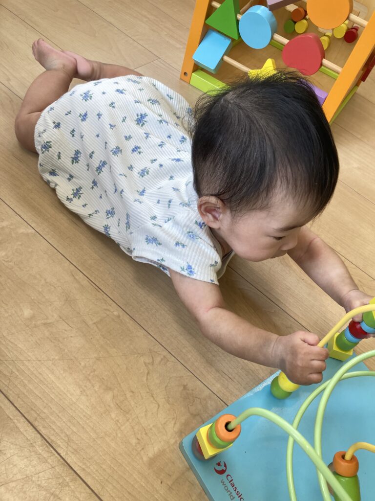 おもちゃを触る時は、手で触っていても、足もぴょこぴょこ…全身運動という感じでした